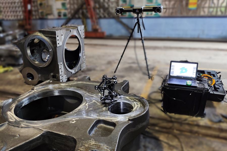 Hyperscan Ultra智能光學(xué)追蹤3D掃描儀因其小巧,便攜,高精度的特點,不受工廠復(fù)雜環(huán)境的影響,既能滿足其檢測要求,又能極大的提高質(zhì)量檢測的效率,且能兼顧許多傳統(tǒng)檢具無法檢測的參數(shù)種類,已經(jīng)逐步被企業(yè)所接受和應(yīng)用,在工業(yè)質(zhì)量檢測領(lǐng)域得到了廣泛的應(yīng)用。尤其是在鑄造行業(yè),HyperScan Ultra 因其無需粘貼標(biāo)志點,使用便攜等特點,在應(yīng)用大型鑄件時有著快速全面的特點,對提高此類工件檢測效率有著巨大的提升和檢測環(huán)節(jié)的補充。