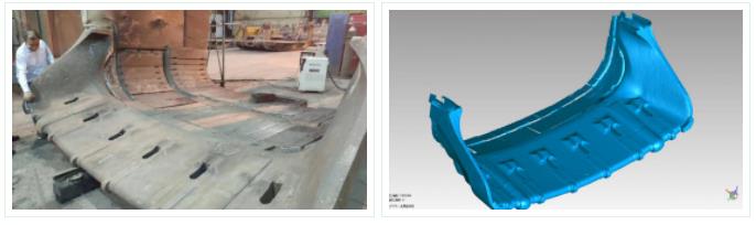 客戶使用傳統(tǒng)卡尺測量建模的方法對挖斗進(jìn)行逆向建模,經(jīng)常會遇到諸如測量速度慢、曲面測量不準(zhǔn)確、無法對復(fù)雜曲面進(jìn)行 測量等問題,建模很大程度取決于工程師的感覺,不可能做到1:1還原。客戶希望通過三維測量,解決建模精準(zhǔn)度和建模規(guī)范化的 問題。
