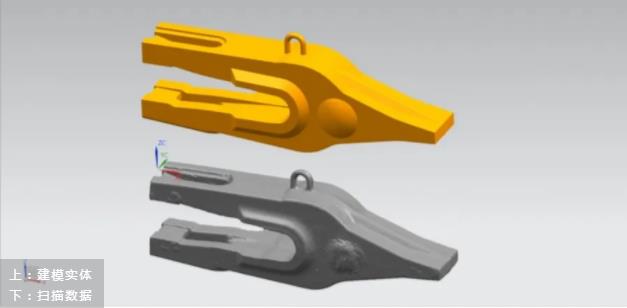 客戶主要經(jīng)營礦山機械的開發(fā)和生產(chǎn),現(xiàn)在需要對現(xiàn)有老舊礦山挖斗進(jìn)行更新優(yōu)化和創(chuàng)新。礦山挖斗本身較大,長度約3米,主要掃描區(qū)域為挖斗前裝配挖齒的部分,最后將挖斗主體與配件挖齒裝配,進(jìn)行開模加工。